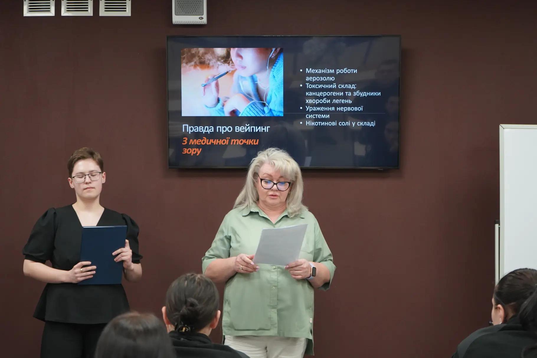 Заняття проводять психологи та медичні працівники ліцею. У доступній та відкритій формі вони обговорюють із молоддю ризики для здоров’я, формування залежності, а також вплив електронних сигарет на фізичний і психоемоційний стан.