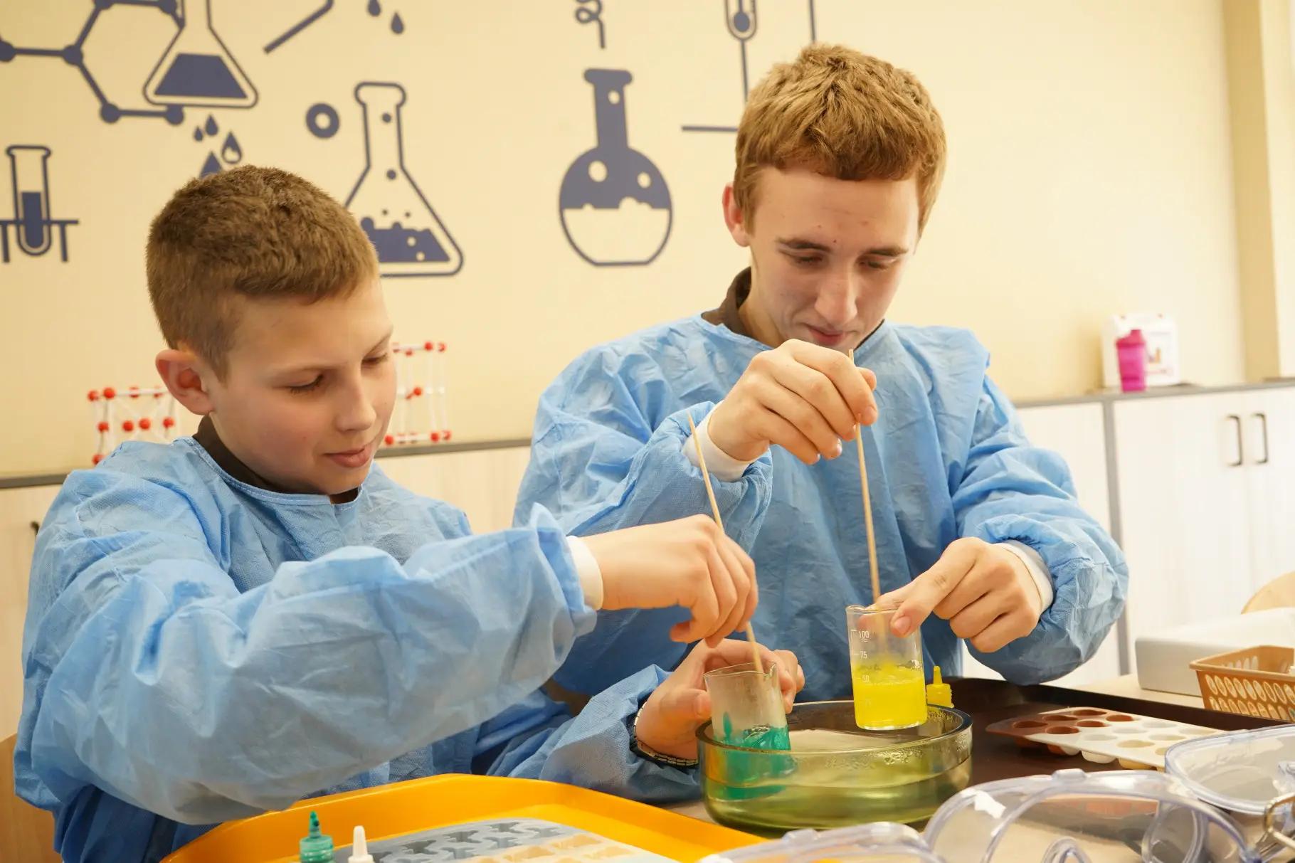 Цей процес захоплює: учні працюють з компонентами, спостерігають хімічні реакції, вивчають властивості речовин і створюють власний продукт. Такі заняття розвивають не лише предметні знання, а й креативність, уважність, навички роботи в команді та відповідальність.
